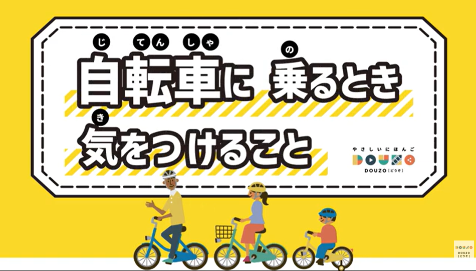 「ごみの分け方」「ヘルプマーク」「応急手当」「自転車のきまり」を紹介している動画です。日本人はもちろん、日本で暮らしている外国人にも周知をしたいテーマを、やさしいにほんごで紹介しています。